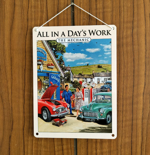 'All in a Day's Work' - Small Mechanic Retro Metal Sign - 8" x 6"